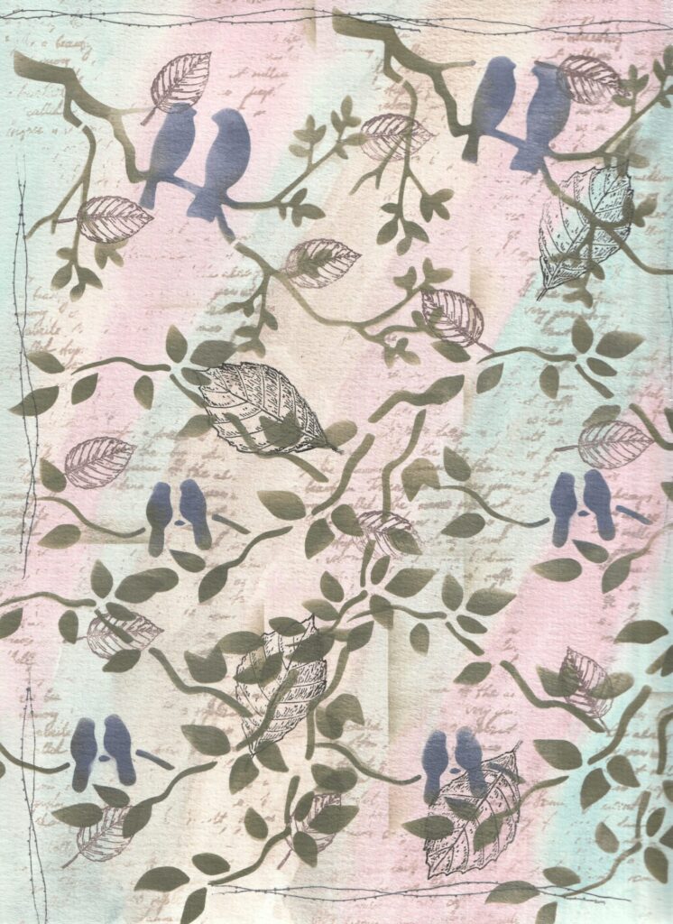 I made sure to let my brush flow around the page at random to blend the colors evenly. Adding more brown to the green and yellow when needed. The colors you choose will depend on the project you are working on. For me, my projects are most often nature-themed, so the colors of nature work best.